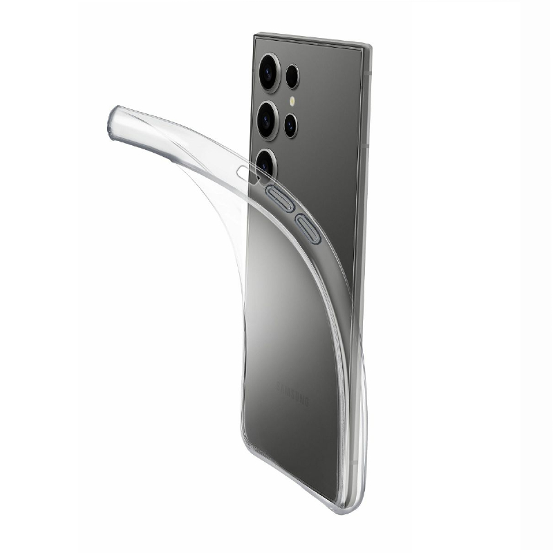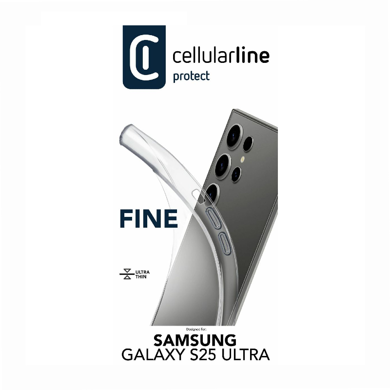 Ovitek CellularLine FINE za Samsung S25 Ultra prozoren, izredno mehak, ultra tanek silikonski zaščitni ovitek. Ovitek se popolno prilega vašemu aparatu in zaščiti pred praskami. Glede na tanko izdelavo, ne popači izgleda vašega aparata.